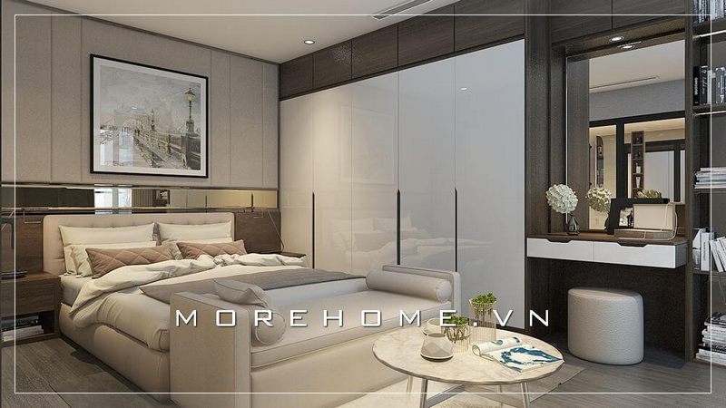 Giường ngủ chung cư tân cổ điển với những đường cong tinh tế mang đến một không gian đậm chất quý tộc châu Âu sang trọng, quyền quý