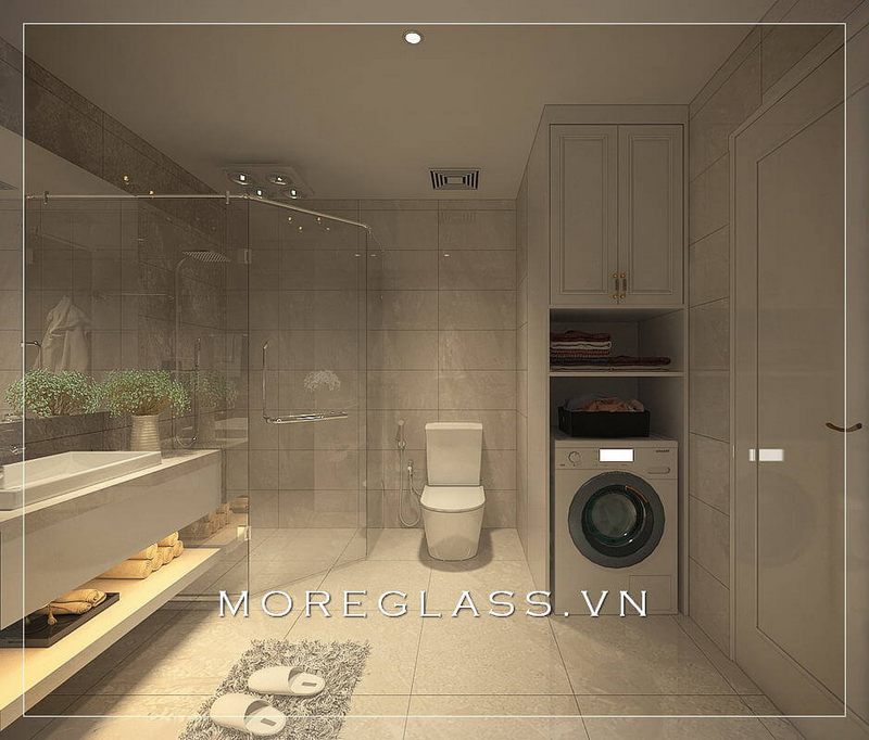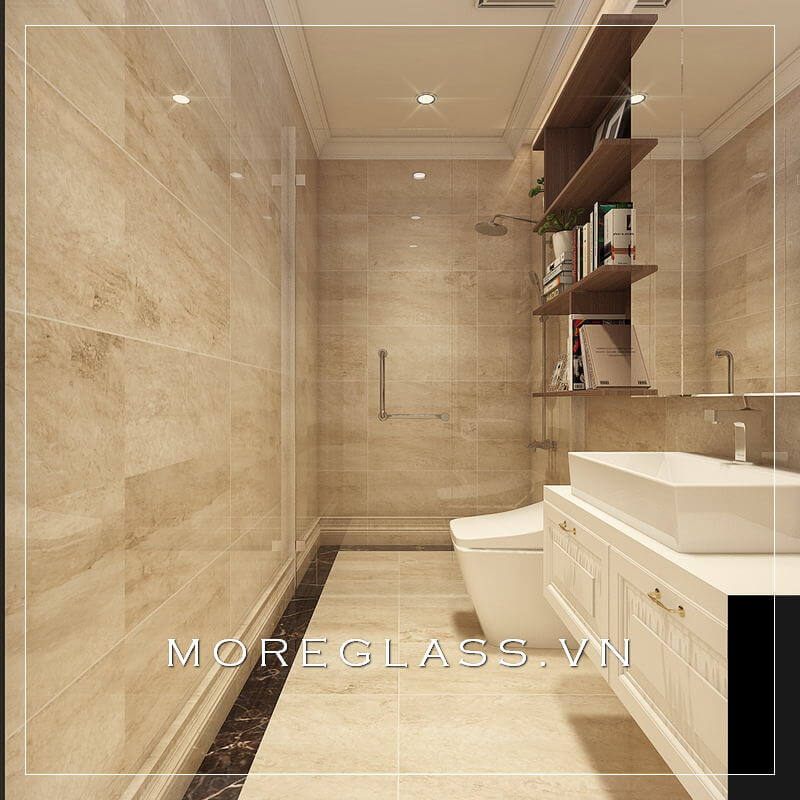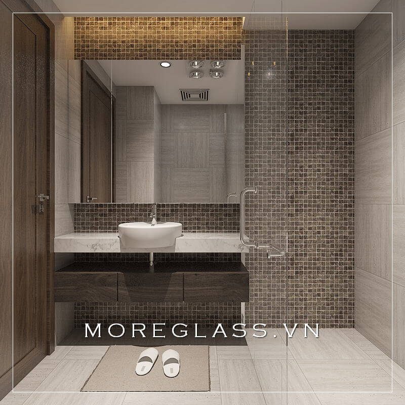 Thiết kế phòng tắm hiện đại sử dụng kính cường lực cao cấp ngăn nước hắt ra nội thất mang đến sự sang trọng, độc đáo