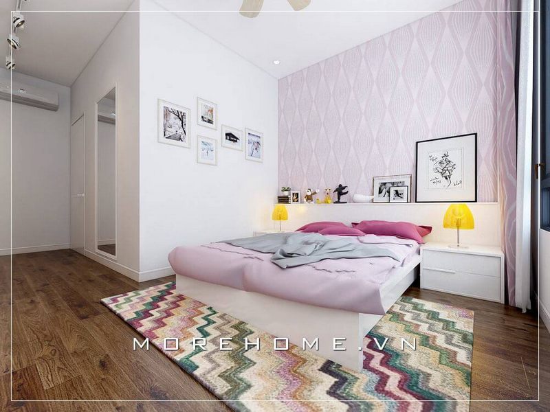 Thiết kế giường ngủ 2 người dành cho chung cư nhỏ phong cách hiện đại, trẻ trung
