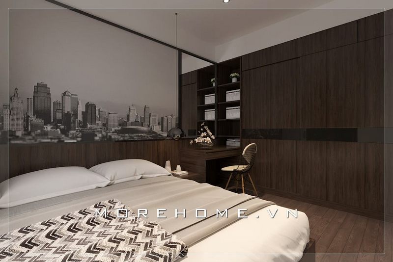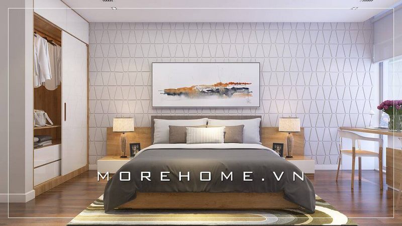 Tủ quần áo với kiểu dáng thiết kế hiện đại đơn giản nhưng tiện lợi và vô cùng bắt mắt trong không gian phòng ngủ của gia đình.