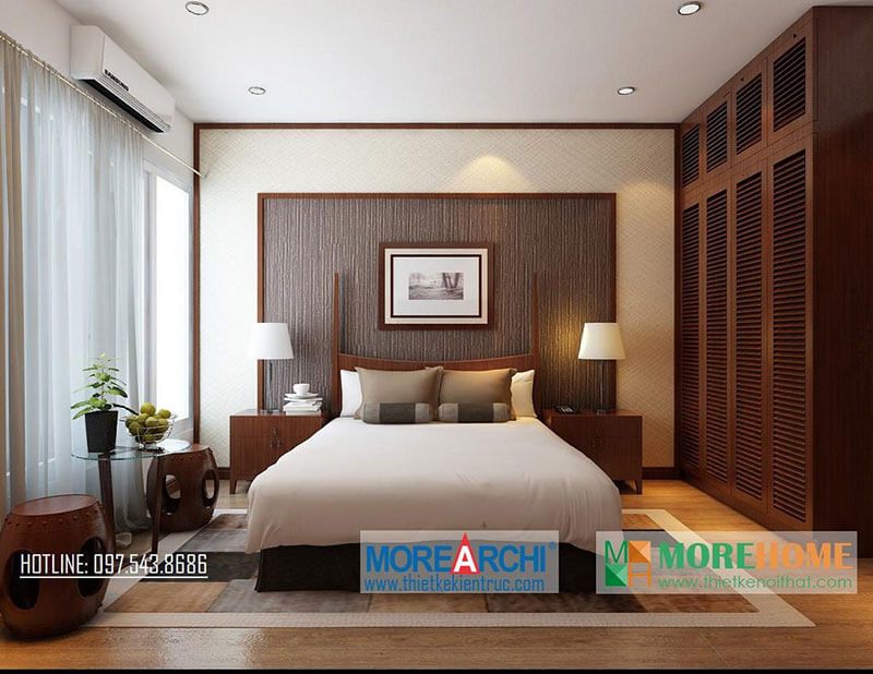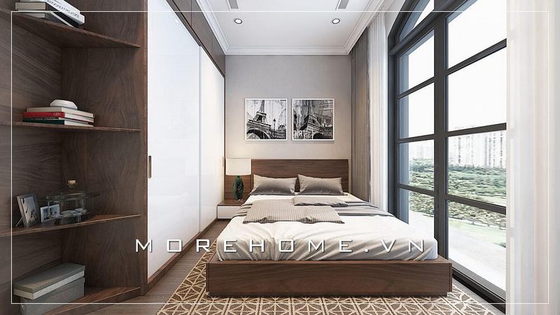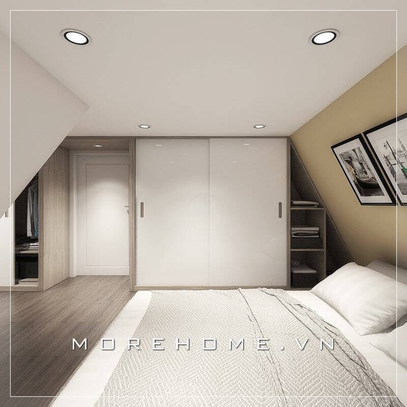 Phòng ngủ chung cư Vinhomes Gardenia kết hợp tủ áo vừa âm tường, vừa cánh lùa, tận dụng tối đa không gian
