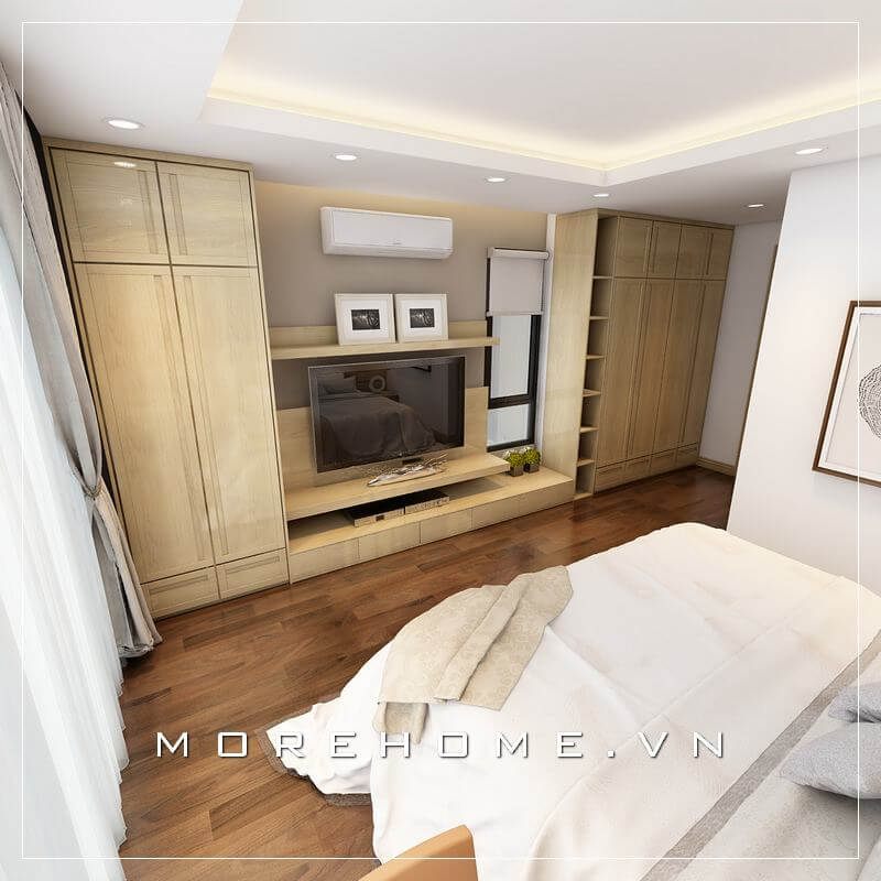 Tủ áo hiện đại kết hợp kệ tủ ti vi đầy trẻ trung phù hợp lựa chọn cho không gian phòng ngủ chung cư nhỏ