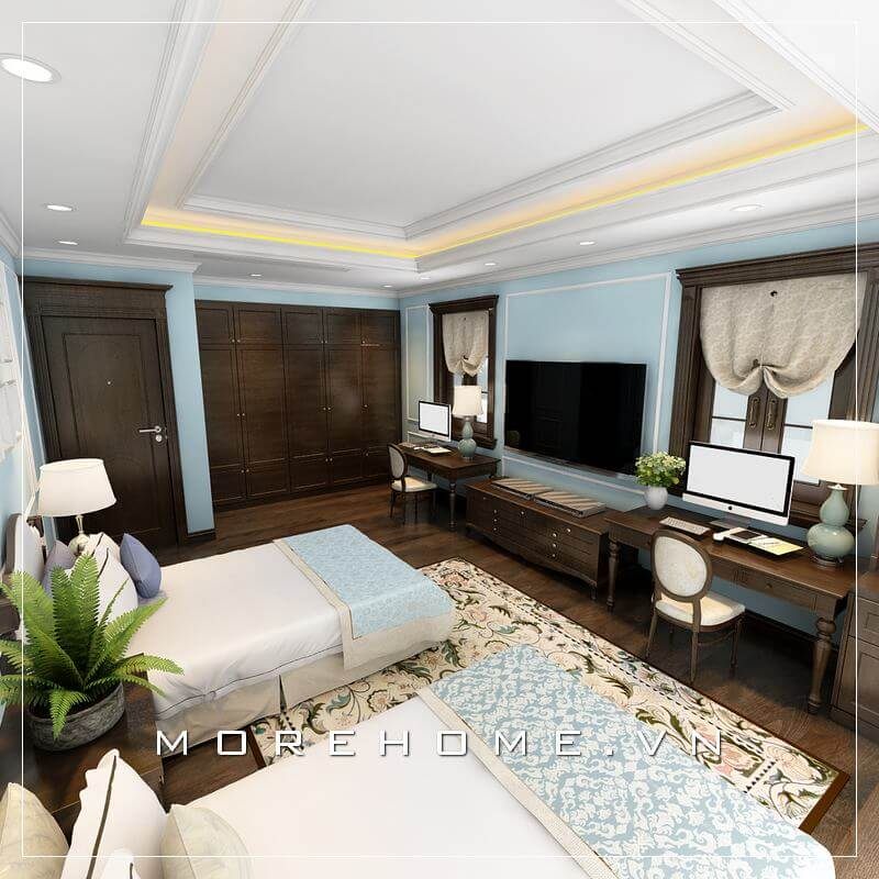 Tủ quần áo kết hợp tủ kệ ti vi hiện đại trong không gian biệt thự, nhà phố độc đáo sáng tạo vừa sang trọng lại tiện lợi, gọn gàng