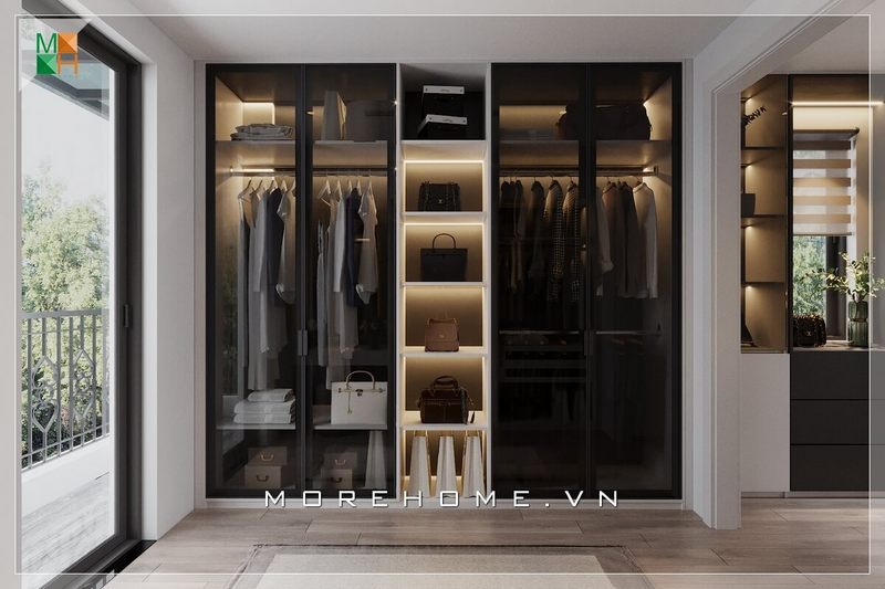 Tủ quần áo mang phong cách thiết kế hiện đại giúp không gian căn phòng trở nên tiện nghi và thân thiện hơn trong mắt người nhìn.