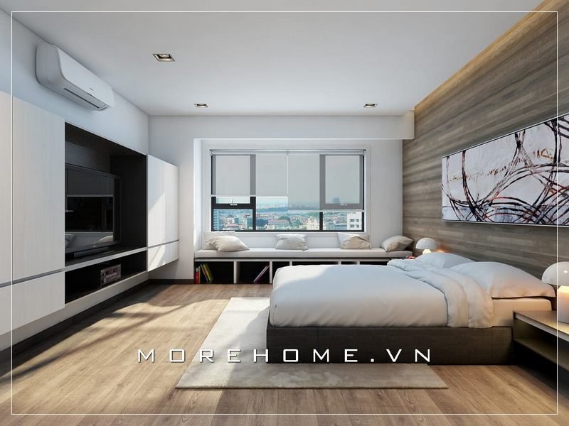 Kiểu dáng của phòng ngủ chung cư cao cấp được tạo nên bởi những chi tiết trang trí nhỏ từ trên tường đến các sản phẩm nội thất trong phòng, góp phần tạo nên ấn tượng của thiết kế.