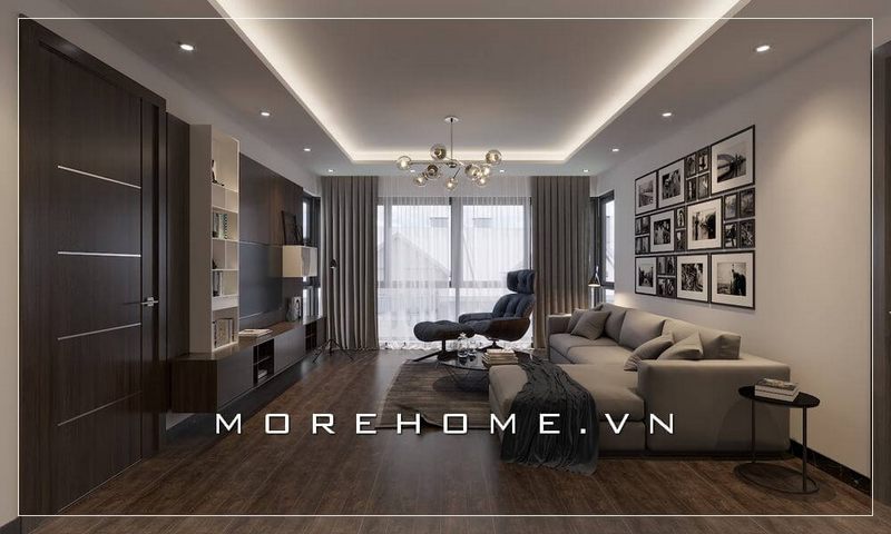 . Kiến trúc sư Morehome áp dụng các hình khối đơn giản và cụ thể để thiết kế một phòng khách chung cư đẹp, giúp gia chủ có trải nghiệm thuận tiện và rõ ràng hơn.