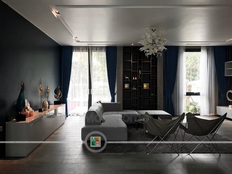 Đây là công trình hoàn thiện nội thất phòng khách tại biệt thự cao cấp Vinhomes Riverside Long Biên, Hà Nội.